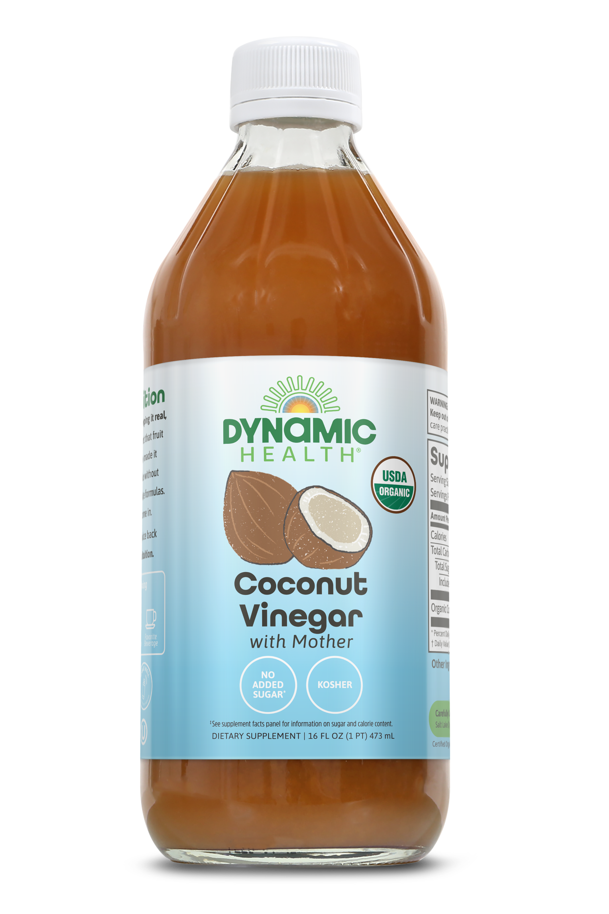 A tablespoon of super substances for highly healthful benefits. Dynamic Health Certified Organic Coconut Vinegar with Mother delivers pure, unfiltered goodness in every tablespoon for simple, powerful wellness support.